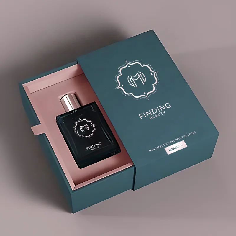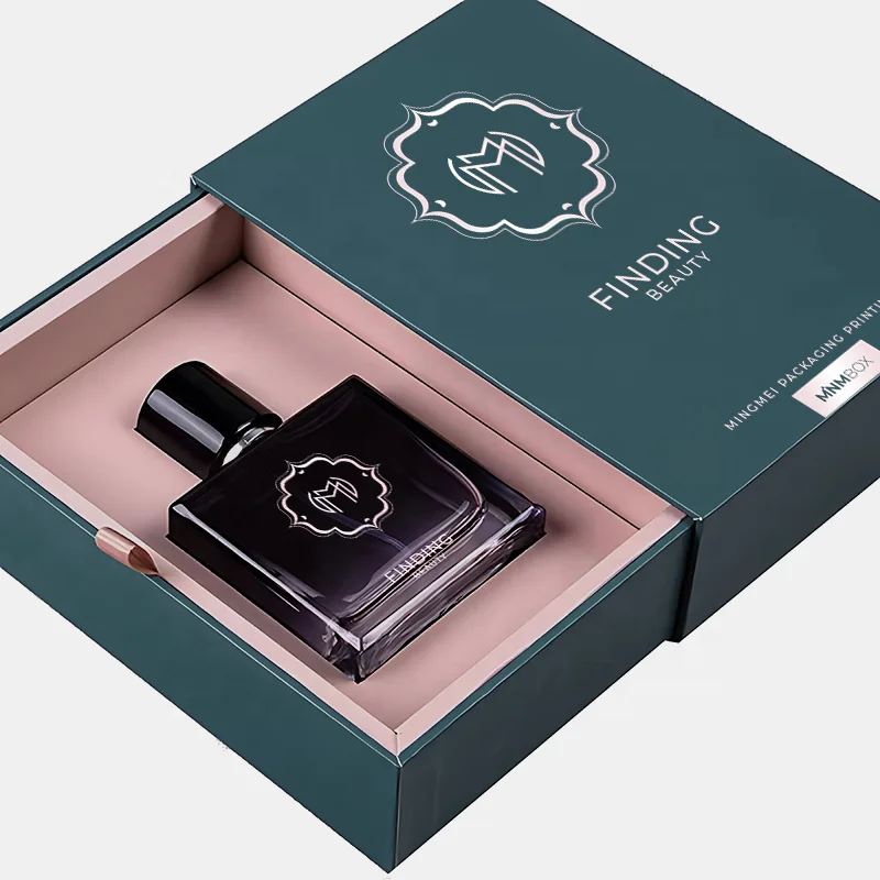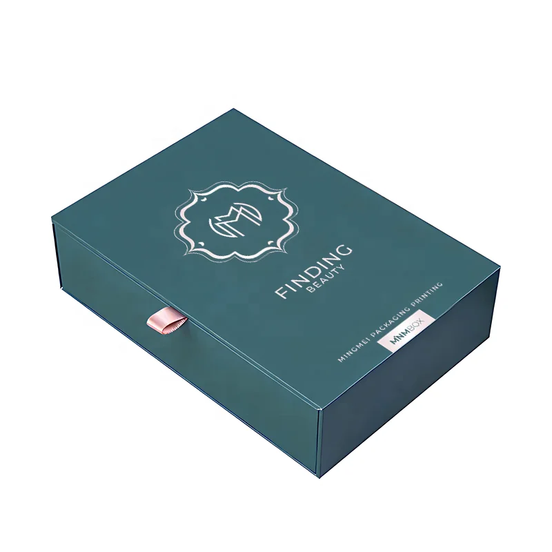 Custom Logo Luxury Dark Green Cardboard Drawer Printing boxes Perfume Empty Box With Ribbon Gift Box Packaging
